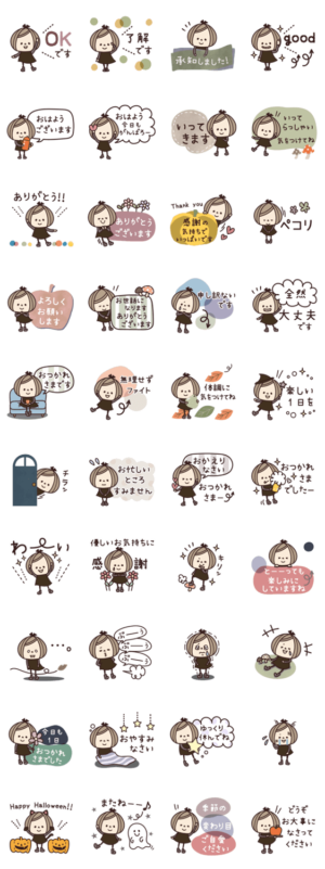 大人シンプルなおしゃかわな♡女の子。ハロウィンに使えるスタンプも入っています♪chaco より発売