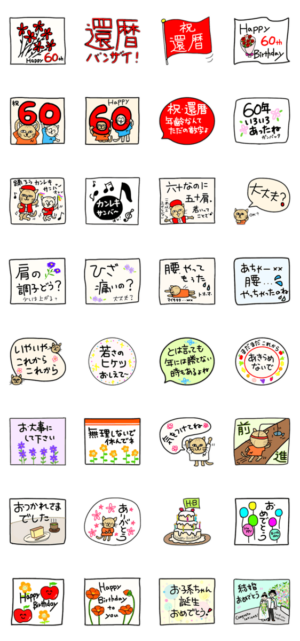 老いにも負けず明るくみんなで還暦をお祝いしましょう。誕生日や結婚祝いも。satopi-man より発売