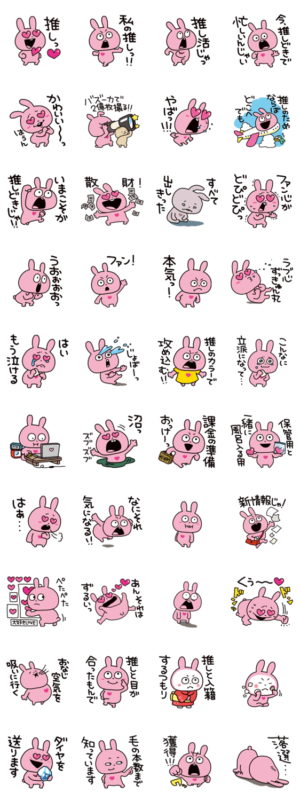 推し活に忙しいうさぎさんのスタンプ。推しへの愛が非常に感じられて良い。汎用性が高いわけではないが、推し活にはおすすめ。