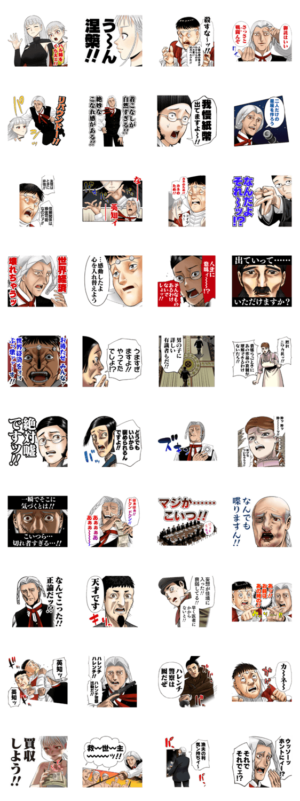 現在人気の頭脳的かつ個性的なキャラが多数登場する漫画のスタンプ。揃いも揃って癖が強い