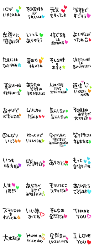 相手への思いやりの言葉が溢れている素敵なスタンプです。とても温かい気持ちになりますね。