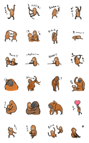 小さくて愛らしいオランウータンベイビーズの続きです。 親子スタンプが増えました!こちらは日本語入りです。