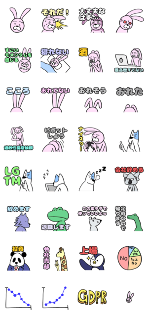 会社を売却した時や過敏性腸症候群になった時、心が折れた時に使えるスタンプが揃っています