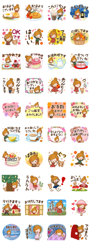 ちょっぴり秋冬モードな日常便利なスタンプセットです♪敬語、丁寧語で使う相手を選ばずに、幅広く使えます♡(お仕事、ママ友、役員、年中OK)ほのぼのカノジョ シリーズ