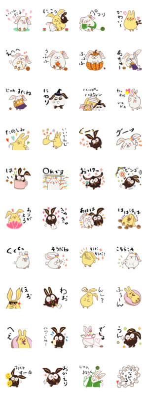 編物大好き白うさぎと黒うさぎ黄色うさぎです。ハロウィンも楽しんでるよ。ペコリ。kuro kabu より発売
