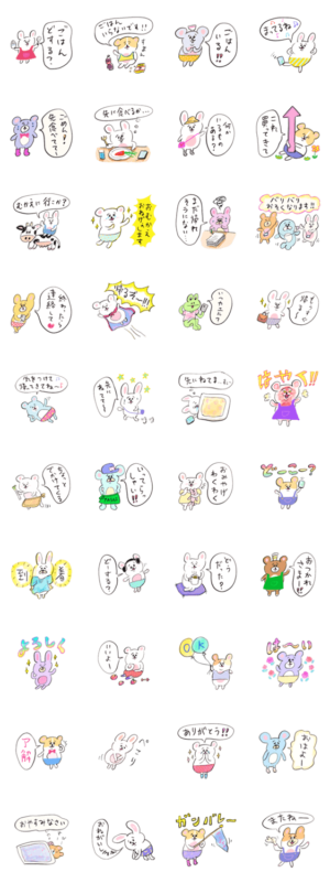 むちむちぽよぽよした小動物キャラの家族連絡スタンプです。スタンプ初心者さんもずーっと使える!イッレ・コスヤ より発売