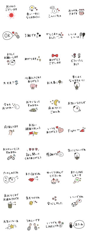 ちょっぴり可愛いスタンプ。大人女子でも使いやすいシンプルにまとめたスタンプです。大人の気遣い。敬語。mame mametaro より発売