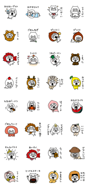 圧の強いねこちゃんの表情、ダジャレなど扱いはちょっと難しいスタンプ。印象には残りやすい。