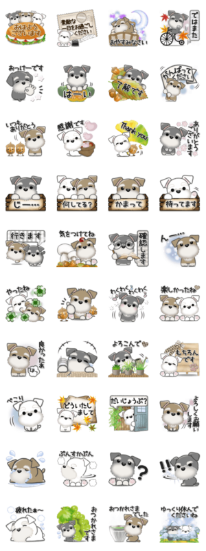 ミニチュアシュナウザーのほっこり優しい秋のスタンプです。ぽてこ より発売