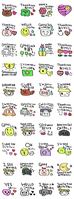 シンプルな日常会話スタンプです。日本語&英語スタンプ