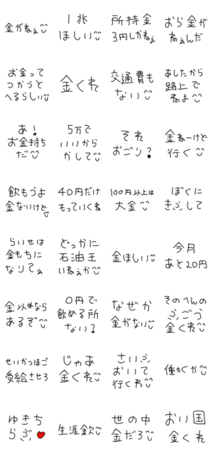 バカ、文字スタンプ、子供の字、かわいい、ギャグ、ネタ、お金ない、面白い、おもしろい、貧困、あるある、断る、遊ぶ