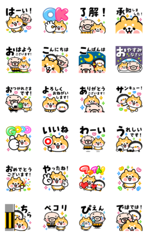 柴犬君とおやじ君の毎日使える定番の挨拶スタンプ!かわいいペンギンちゃんも出てくるよ♪敬語多めの使いやすい飛び出すスタンプです。。