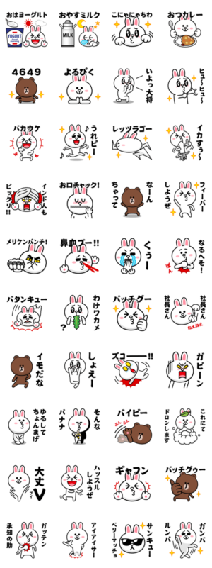 LINEキャラクターズのブラウンとコニーが登場。毎日使える、便利で日常会話の挨拶スタンプ。昭和レトロやダジャレ、オヤジギャグ、死語などをテーマにしたスタンプ。 ※BROWN & FRIENDS をみんなでつくろう!キャンペーン参加スタンプです4A-Studio(よんえーすたじお) より発売
