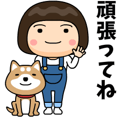 オーバーオール女子【 犬と一緒 】 スタンプ情報
