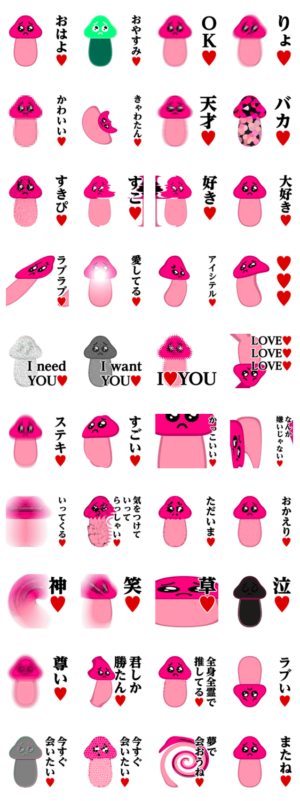 ぴえんMAX/ぴえん/ピエン/キノコ/茸/菌/元気/ピンクのキノコ/ぴんく/ビンビン/ラブラブ/大好き/毎日使える/使いやすい/挨拶/家族/カップル/恋人/彼氏/彼女/アベック4A-Studio(よんえーすたじお) より発売