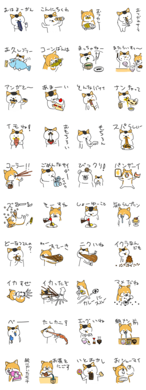 キャラクターブランド「ポケファス」のスタンプ。イラストは全体的にラクガキ風。メッセージは食べ物を挟んだダジャレが多く、まあまあ使い所はある。