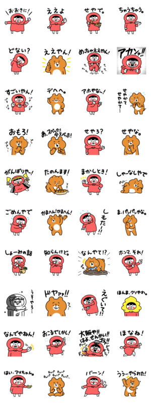 赤ずきんしゃんとくましゃんの関西弁スタンプです。chikuwa より発売