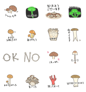 実在するキノコをモチーフにしたユーモアあふれるスタンプです。椛 より発売