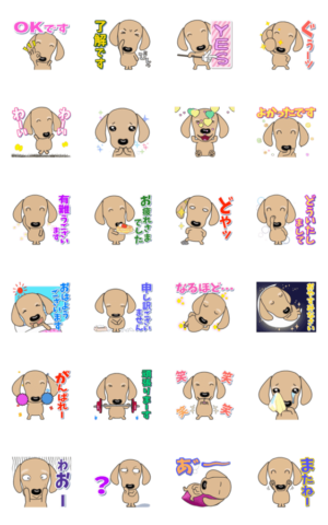ダックスフンド犬の少しだけ丁寧な敬語スタンプです。Masajii より発売