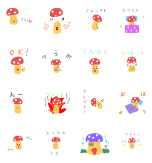 子どもが手描きイラストで作ったきのこのスタンプです。GreeM より発売