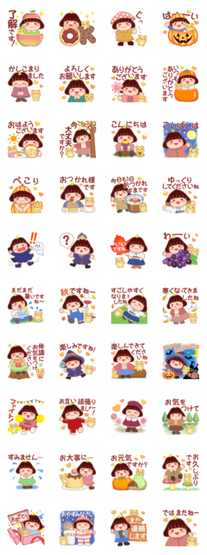 ちょっと太めのおんなの子「でぶりん」の秋の日常 に使いやすいスタンプです。めぐみん より発売