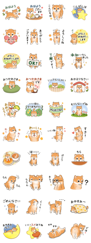 かわいい柴犬の毎日使えるスタンプです(日常・挨拶・敬語)erimari より発売
