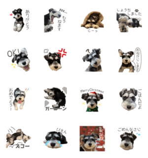 ミニチュアシュナウザーの男の子のルーク。かわいいルークの日常スタンプです。犬/いぬ/わんちゃん/ペットふみの より発売