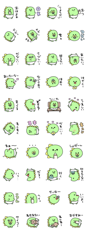 甘えたいバブ♡シュールなミニ恐竜のスタンプです。eribo より発売