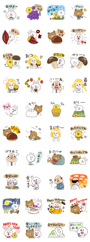 LINEフレンズと秋・冬をテーマにしたスタンプ。全体的に無難に使いやすいため、持っていて損はない。シーズンが合えば汎用性は抜群。