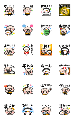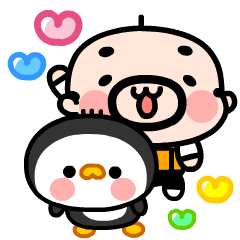 おやじ君とペンギンちゃんの毎日使える動くスタンプ。定番の挨拶と返事がそろってます!友達との日常会話におすすめ♪前田ムサシ より発売