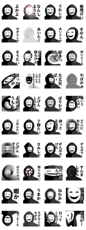 仮面集団のスタンプ(博多弁) スタンプ画像一覧