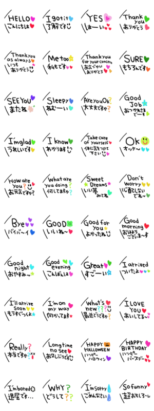 シンプルな日常会話スタンプです。日本語&英語スタンプnenerin より発売