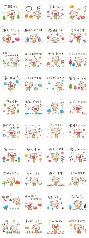 どちネコ。北欧風。「了解です」「いってきます」から「わーい」まで。明るい色合いで、毎日挨拶にぴったりなシンプルメッセージがいっぱい。家族、学校、お仕事でも。Mami / エストループ より発売