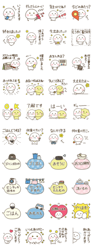 共働き家族に嬉しい良く使う言葉がたくさん、日々の連絡や忙しい毎日に忘れがちな感謝の気持ちも添えて、毎日を全力サポートするスタンプでござる!ルーク より発売