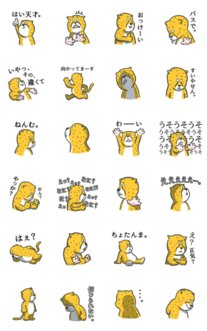 世界最速の哺乳類チーターのちい太のスタンプです。いまいちテンションが上がらない時、人類を煽りたい時にお使いください。eza より発売