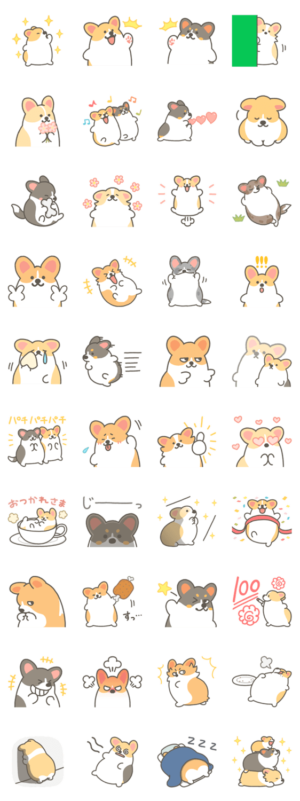 コーギー犬の「スタンプの日」記念スタンプです。毎日使える定番スタンプにコギの成分が欲しくなったらお使い下さい。たきむら りゅう より発売