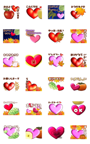 ❤️可愛いハート動く❤️秋、挨拶 スタンプ画像一覧