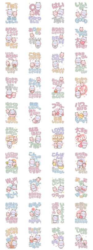 おしゃれなカラーと驚くほど大きな文字で選びやすいカバたんの「でか文字W敬語(長文)」です♪ 敬語がメインで、誰にでも使いやすい仕様になっています。 ※このスタンプはトークルームで大きく表示されるBIGスタンプです。プリン より発売