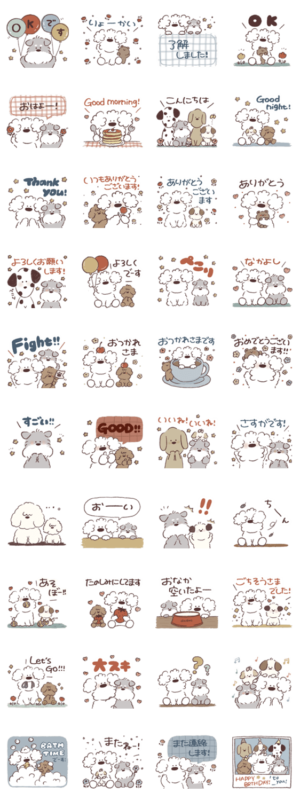 ぼくは、いぬ。と仲間たちのスタンプです。 愉快な仲間たち初登場! どんなシーンにでも使いやすいスタンプです。miiiiichan より発売