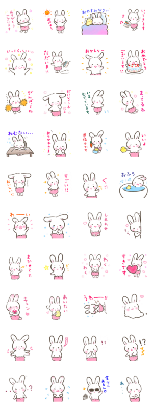 元気でかわいい白いうさぎのマロちゃん スタンプ画像一覧