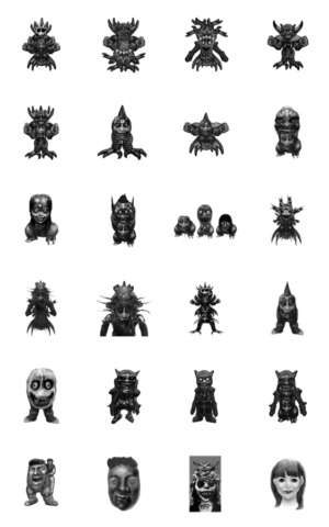 様々なモノクロクリーチャー24個入りセット。文字ナシのどんな場面でも使いやすいスタンプです!もけまん より発売