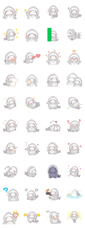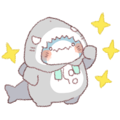 サメの着ぐるみを着た、サメ!?のスタンプです。かまってほしい時などにオススメです!駄菓子屋 より発売