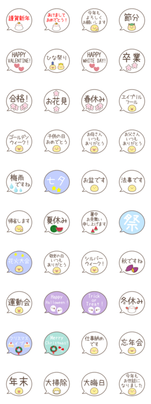1年中使える季節のイベント/挨拶スタンプのセットです。