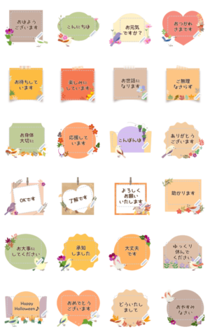秋色フレーム*小鳥のメッセージスタンプ。好きなテキストを自由に入力して、毎日の挨拶やおしゃべりにご利用ください。 現在この商品は一部のスマートフォン版LINE 10.3.0以上のトークルームでのみ使用できます。動作環境の最新情報はヘルプをご確認ください。acacia より発売