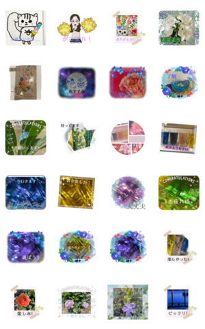 LINEスタンプメーカーでつくったスタンプです。子供が描いた絵や自然のものを使って作りかわいいスタンプやオシャレなスタンプを作りました♪