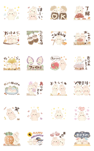 もふもふうさぎの毎日使いやすい動くスタンプです♡あいさつ・日常・秋・シンプル・もふもふ・アニメーション・ハロウィンchatoran より発売