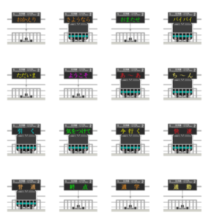 鉄道の駅に出入りする列車のアニメーションです。電光掲示板にメッセージを表示させます。ヨシダアカリ より発売
