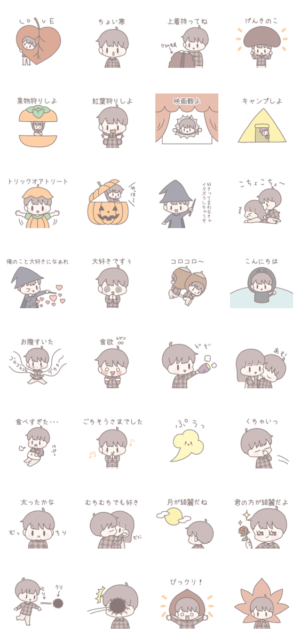 【男の子】秋のほくほくカップル スタンプ画像一覧
