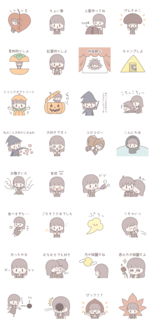 【女の子】秋のほくほくカップル スタンプ画像一覧
