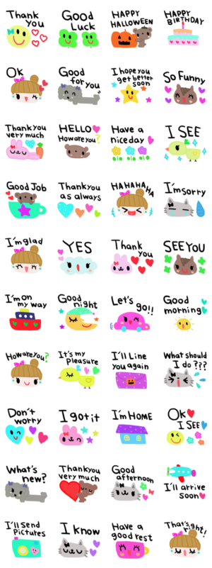 nenerinシンプル日常会話スタンプ521英語 スタンプ画像一覧